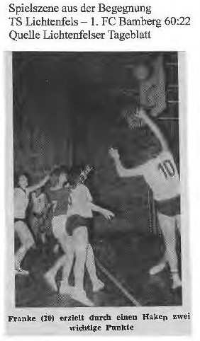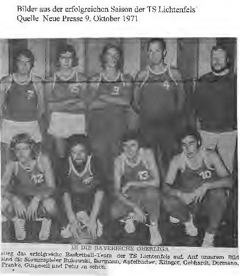 Erstmals wurde in Oberfranken eine Spielrunde durchgeführt (Protokoll Bezirkstag 28. März 1971). In Hin- und Rückspielen kämpften der 1. FC Bamberg, BBC Coburg und TS Lichtenfels um den Bezirkstitel. Ähnlich wie die 1. Herrenmannschaft des TS Lichtenfels sorgten auch die Damen der Turnerschaft für Schlagzeilen und sicherten sich ohne Niederlage die Meisterschaft.